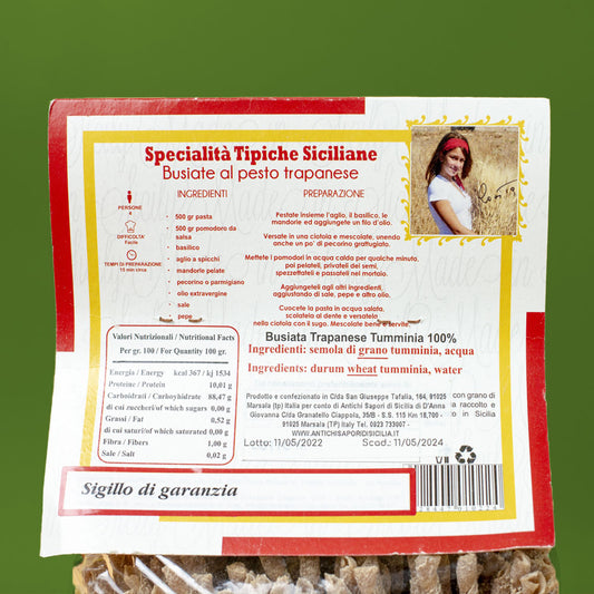 Pasta Siciliana (Busiata Trapanese) con Farina Integrale Tumminia